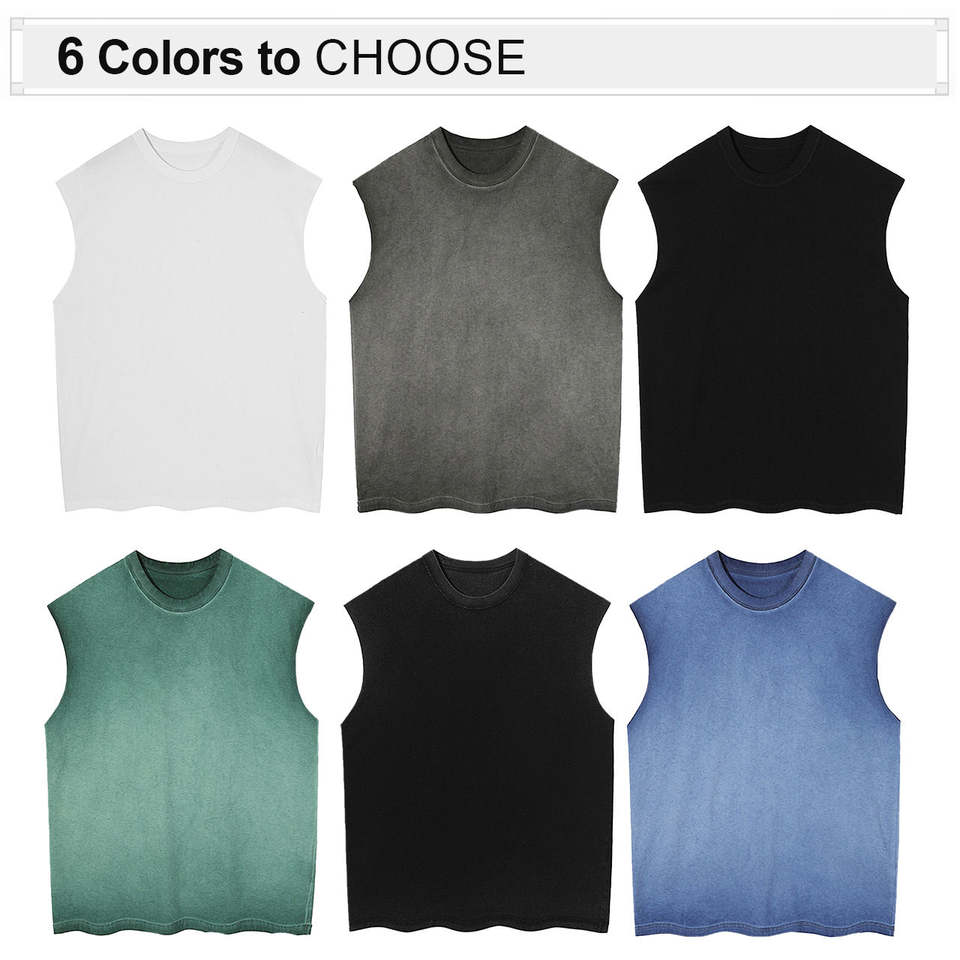 Wholesale High Quality 100% Cotton Wash Sleeveless t Shirt 250g Blank Custom logo Heavy Wash Men's Sleeveless T-shirt