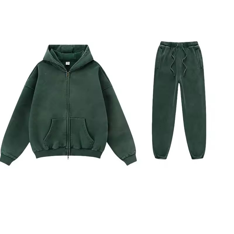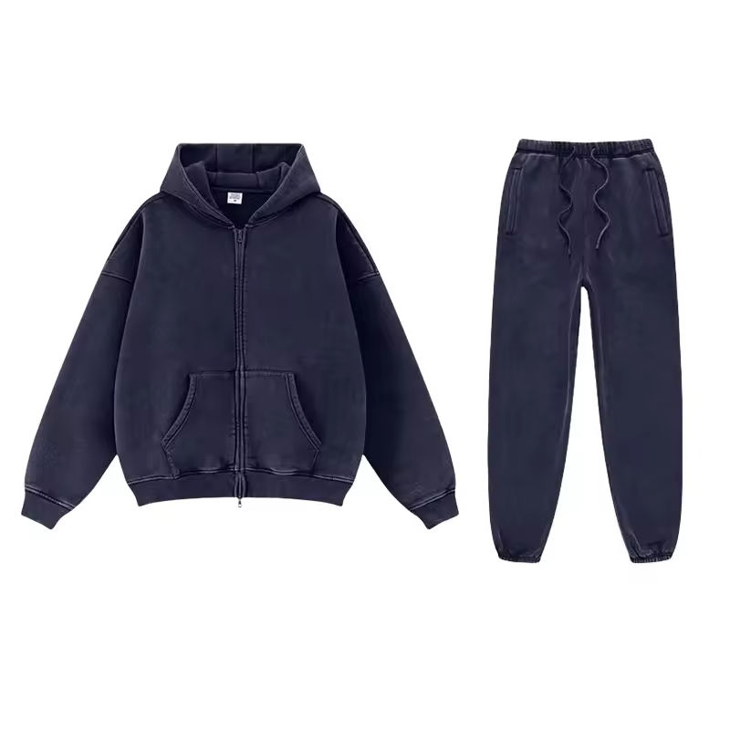 Wholesale High Quality 2 Piece Set Oversized Hoodie Set Men Full Zip up Hoodie Set Acid Wash Tracksuit Men on ZOHAN CREATIONS