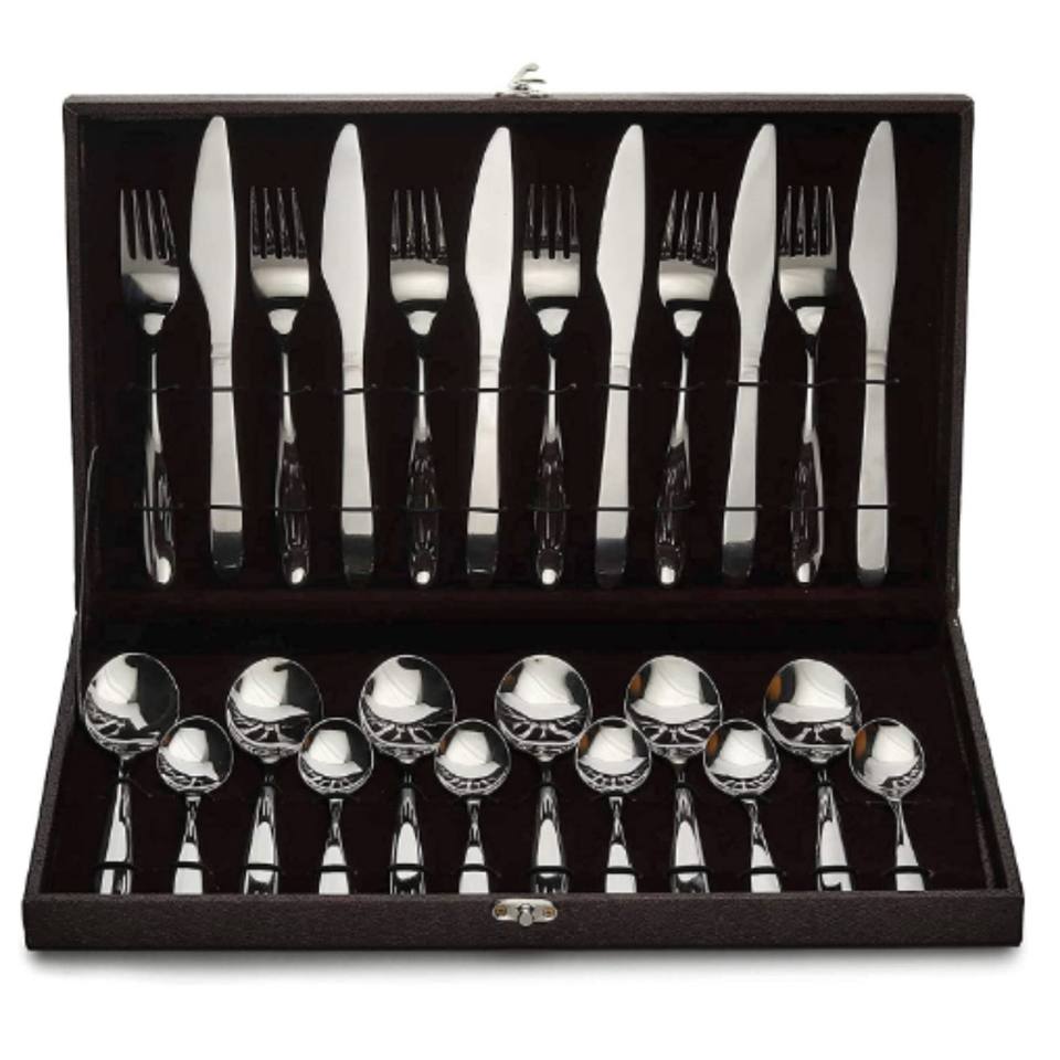 Wholesale High Quality 24-Piece Cutlery Set Black Handle Stainless Steel Flatware Set Durable Tableware for Wedding Events