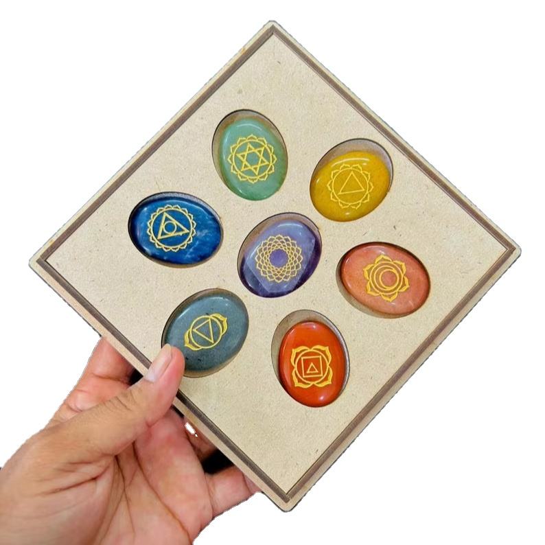 Wholesale High Quality 7 Chakra Quartz Reiki Healing Set with Feng Shui Love Polished Customized Box for Home Decoration
