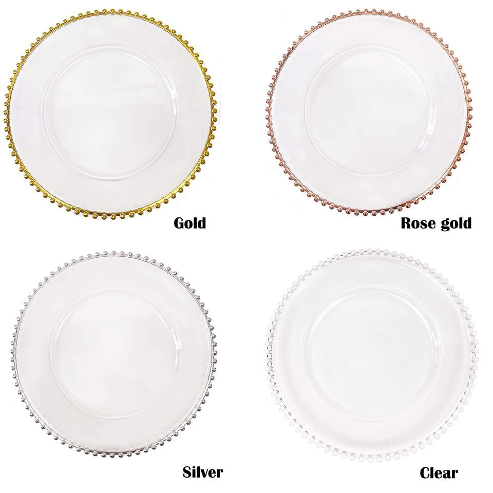 Wholesale High Quality Acrylic Gold Sier Beaded Clear Charger Plates 13" in Bulk Wedding Set