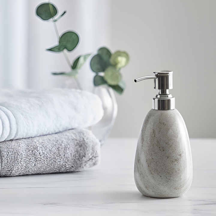 Wholesale High-Quality Bathroom Manual Shampoo and Foaming Soap Dispenser Elegant Marble Design for Soap and Shampoo Storage