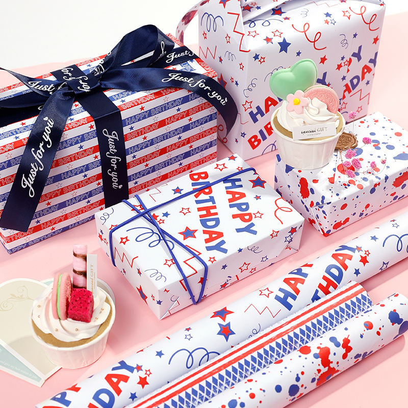 Wholesale High Quality Birthday Tissue Rolls Red and Blue Packaging Wrapping Paper Roll Uperior Craftsmanship