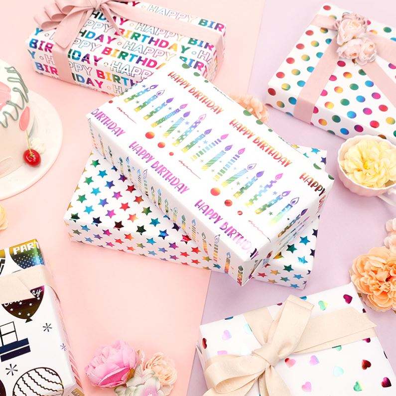 Wholesale Disposable Printed High Quality Birthday Tissue Rolls Rainbow Foil Candles Packaging Wrapping Paper Roll Superior