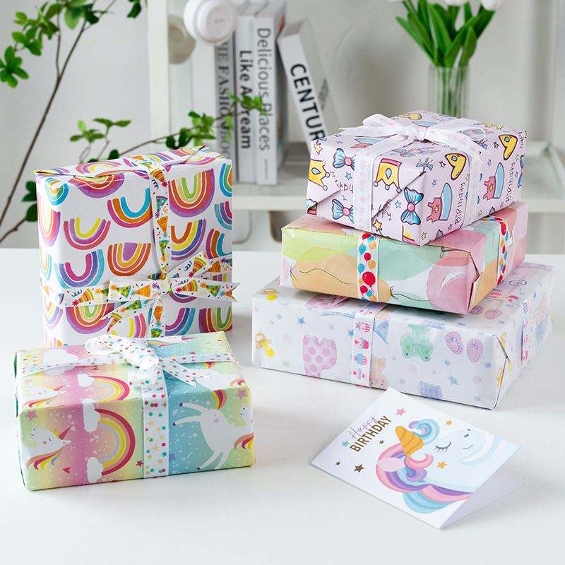 Wholesale High Quality Coated Silicone Virgin Birthday Wrapping Paper Rolls Kids Day Collection Packaging Uperior Craftsmanship