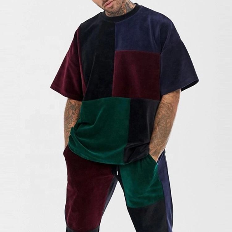 Wholesale High Quality Blank Short Sleeve Velvet Two Piece Set Twin Short Set Mens Clothing Crewneck Shirt Breathable Tracksuit