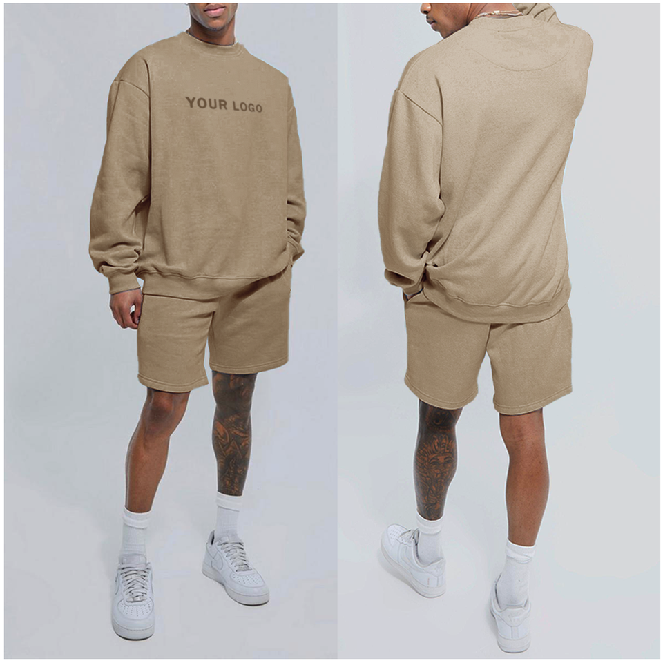 Wholesale High Quality Casual Baggy Long Sleeve Clothing Crew Neck Athletic Sweatshirts Set Custom Men Fitness Hoodie and Shorts