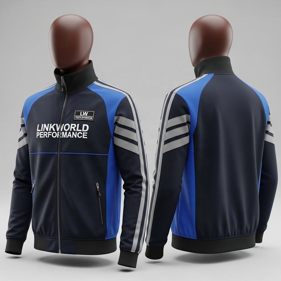 Wholesale High Quality Casual Winter Windbreaker Jacket Zipper Closure Solid Pattern Stand Collar-Link World Intl Logo Style