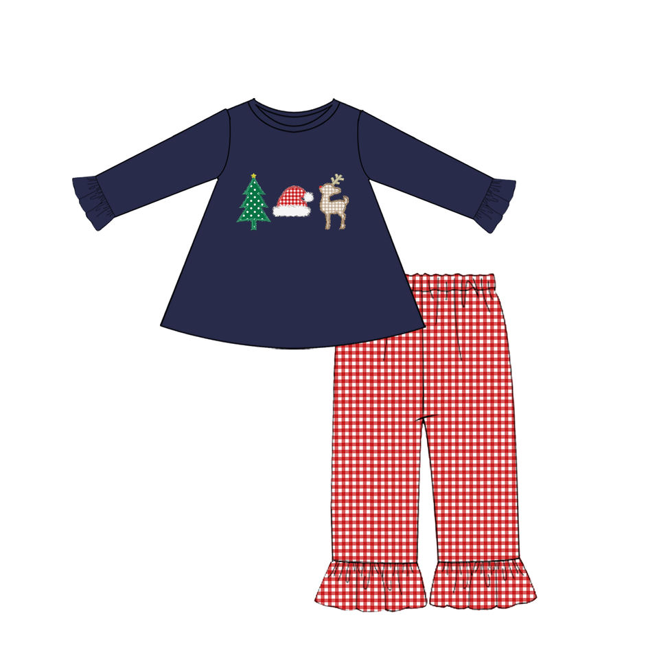 Wholesale High Quality Christmas Santa Applique Sibling Sets Seersucker Pants Baby Boy Outfit