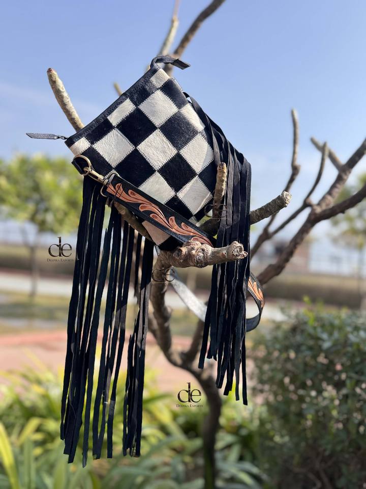 Wholesale High Quality Cowhide Fur Leather Fringe Bag Hand Tooled Carving Beautiful Designer Party Wear Bags Women's Multi Use