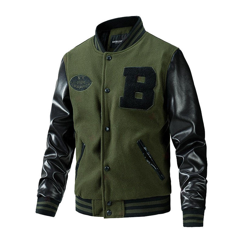 Wholesale High Quality Custom Men's Varsity Jacket PU Leather with Stand Collar and Street Style Embroidery for Winter