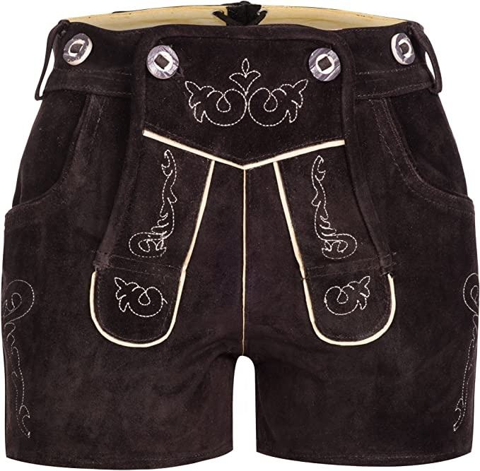 Wholesale High Quality Custom Real Leather Garman Women's Kurz Lederhose Women's Costume Leather Short Vintage Brown Color