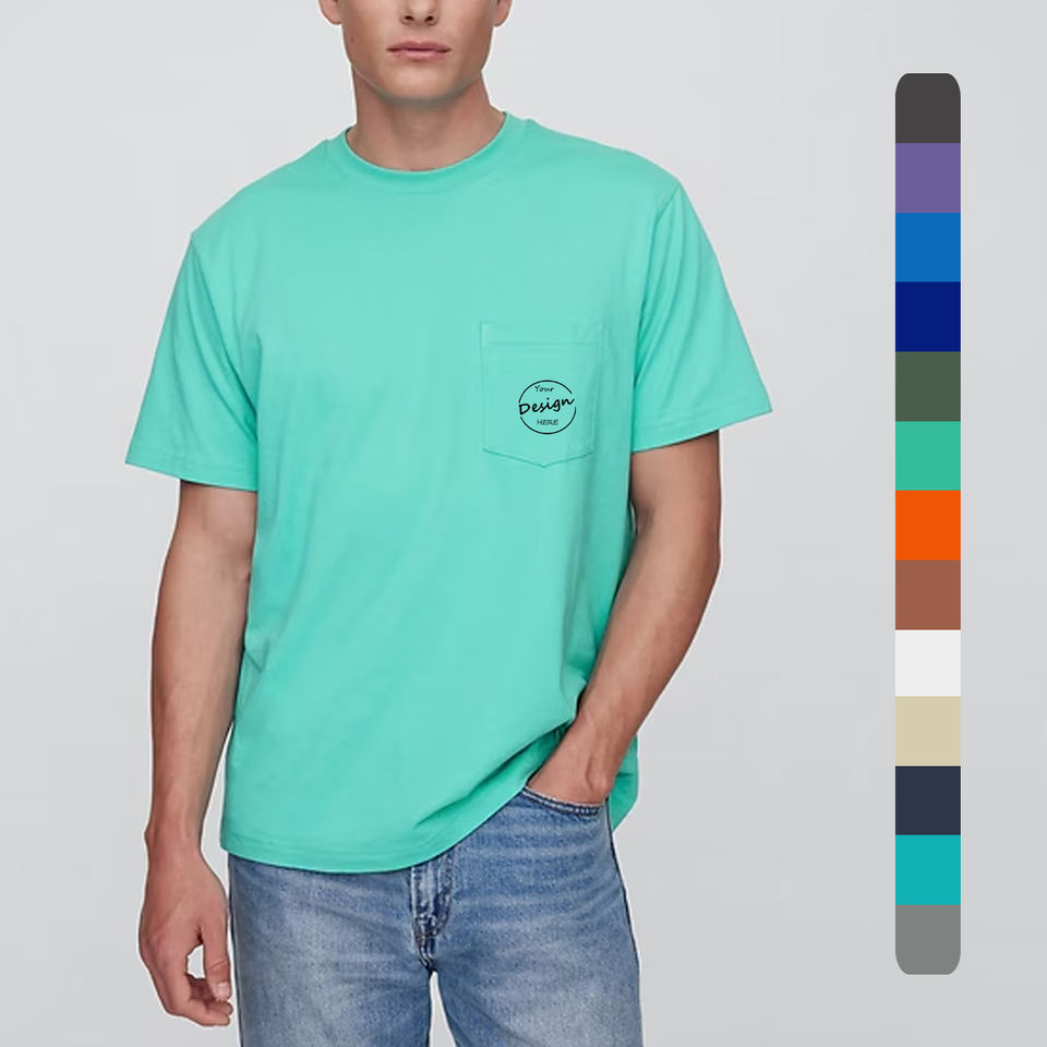 Wholesale High Quality Custom Silk Screen Printing Blank Thin 180 GSM Solid Color Cotton Tshirts With Front Pocket Men