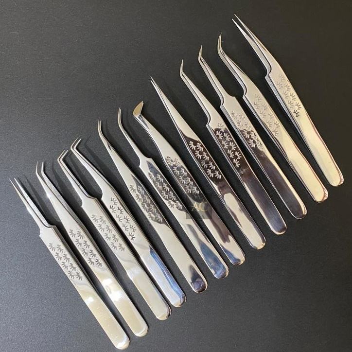 Wholesale High Quality Customized Logo Stainless Steel Eyelash Extension Tweezers Sustainable Pointed Lash Extension Tweezers