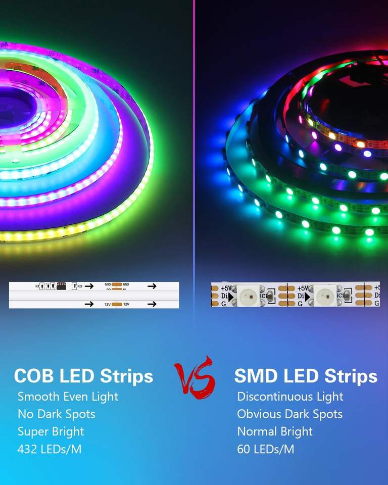 Wholesale High Quality Decor COB LED Strip 24VDC/12VDC USB RGB+W Remote Control 384LED/m 5M Dimmable TV Backlight Dot-Free