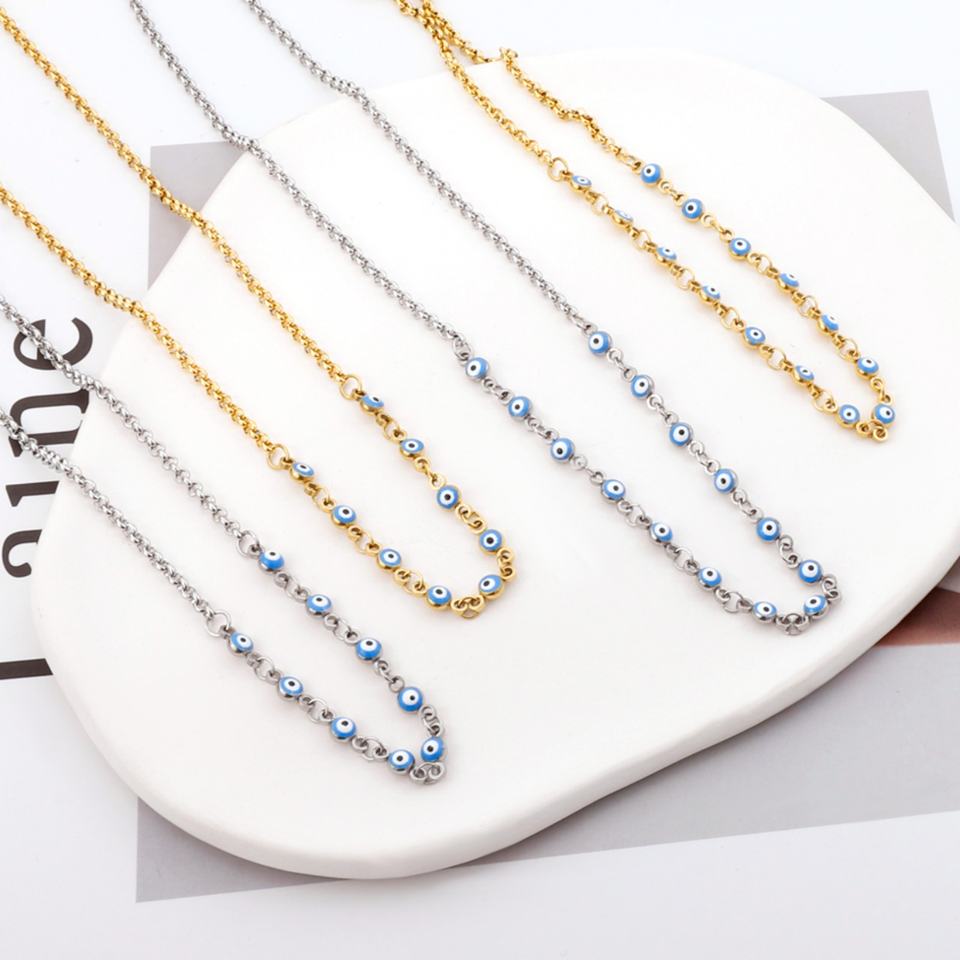 Wholesale High Quality Eye Stainless Steel Hamsa Hand 18k Gold Plated Beaded Charm Chain Choker Pendant Necklace