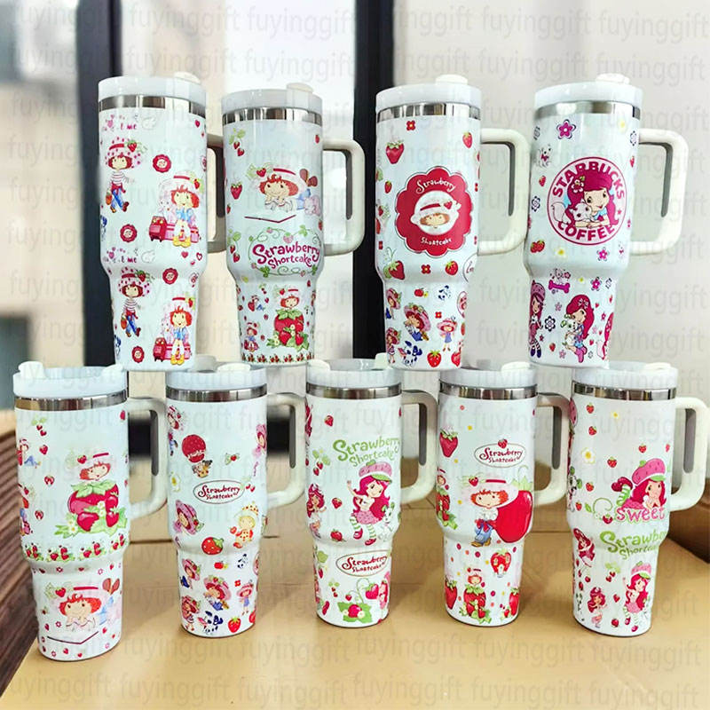 Wholesale High Quality Flip Straw Top Lid Cartoon Strawberries Shortcakes Tumbler Cute Insulated Small Kids Cup