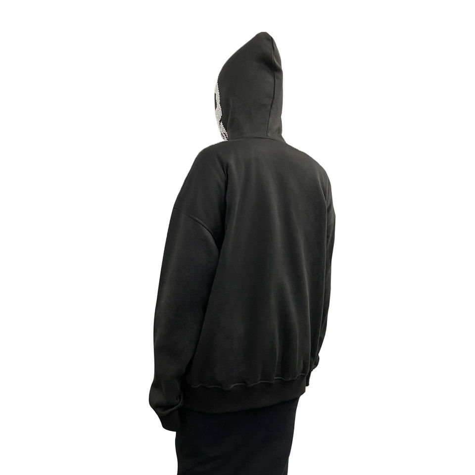Wholesale High Quality Full Face Zip Hoodie Custom Zip up Black Cotton Blended Zipper Hoodie Rhinestone Full Face Zip up Hoodies