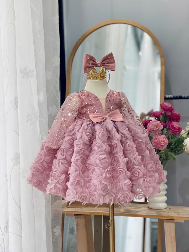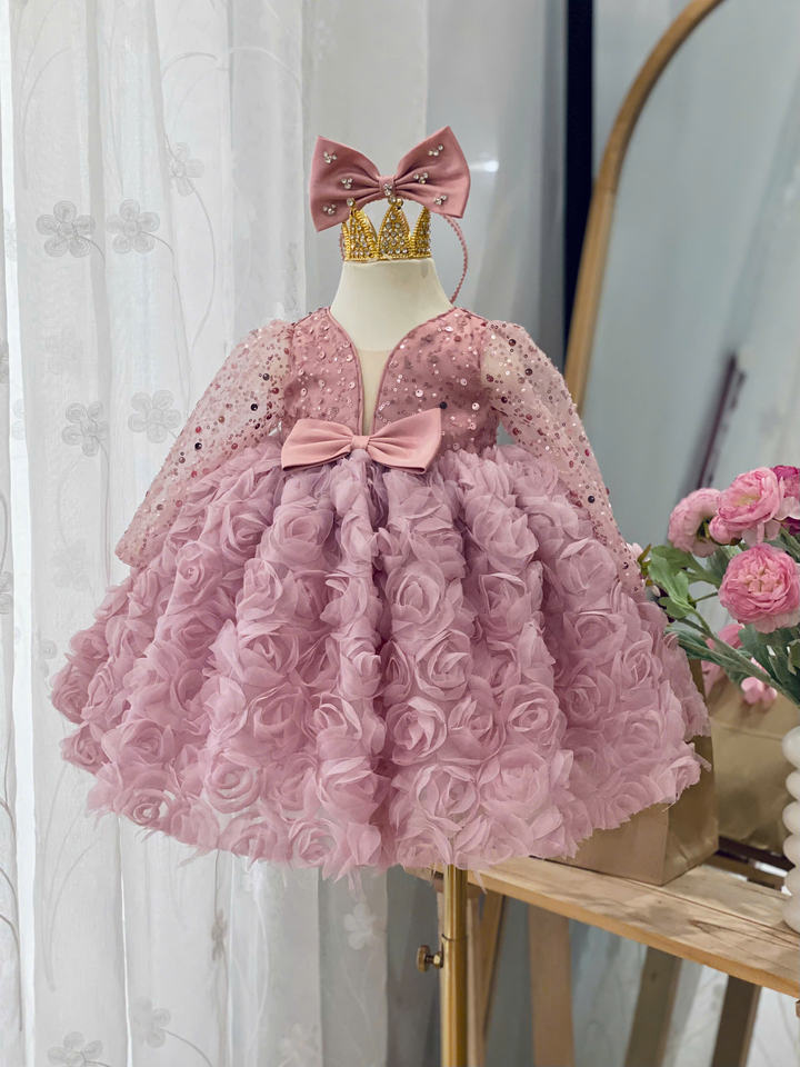 Wholesale High Quality Girls Party Dress 3D Floral Pattern Sequin Maxi Longsleeve Many Color Options ODM/OEM Children Mesh
