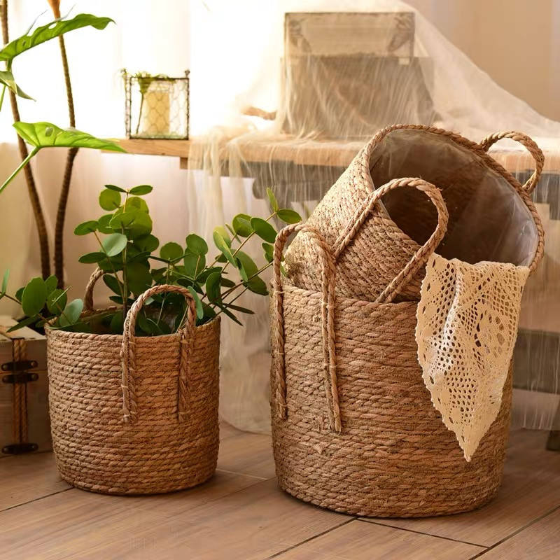 Wholesale High Quality Handmade Seagrass Storage Baskets with Handles New Design for Bathroom Kitchen & Laundry Decoration-MS103