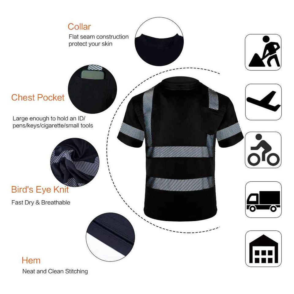 Wholesale High Quality Hi Vis Shirts Tops Reflective Safety T Shirts Safety Clothing Black color ODM OEM services