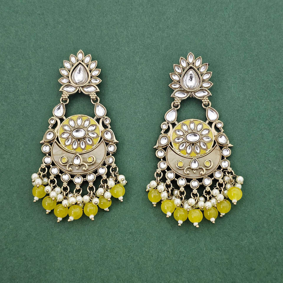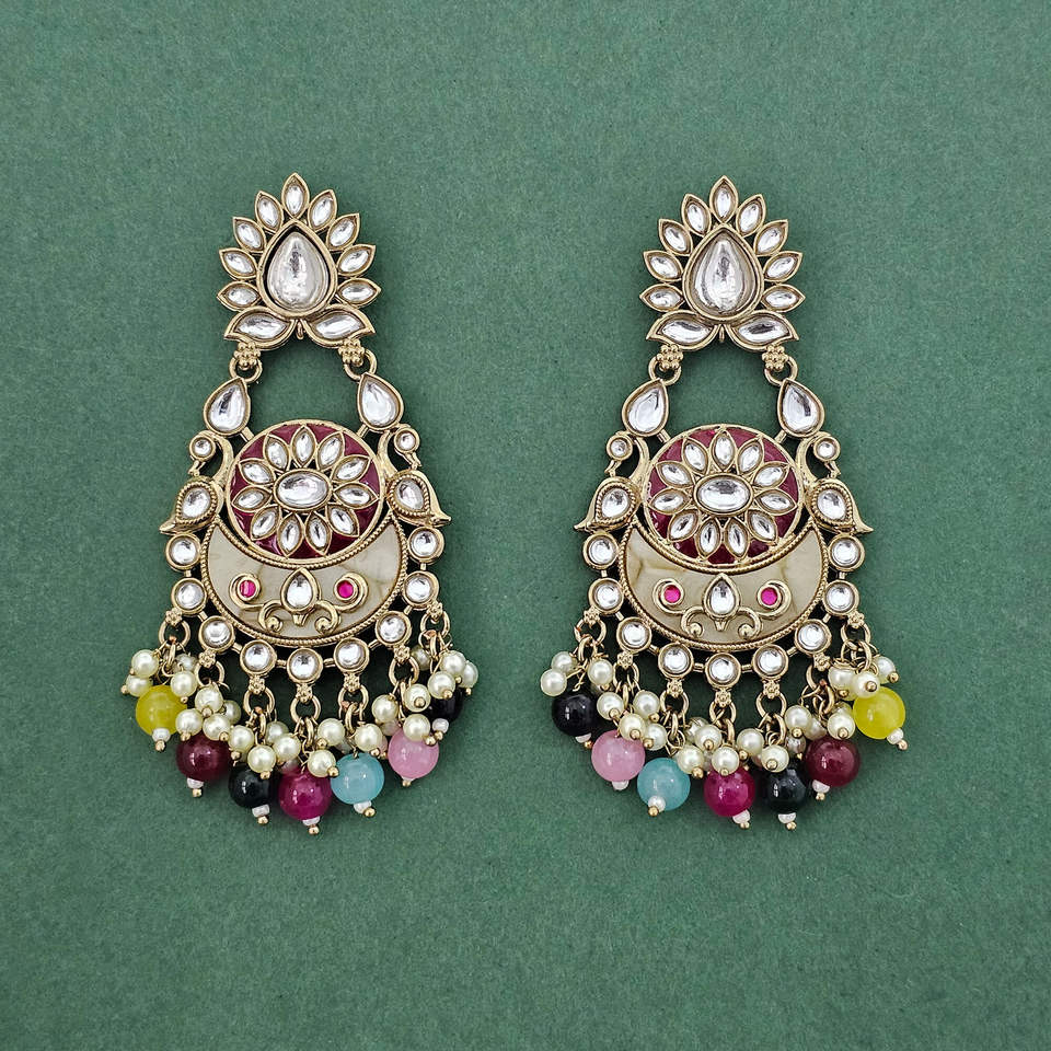 Wholesale High Quality Indo Western Fashion Chandelier Earrings Meenakari with Mehndi Plating