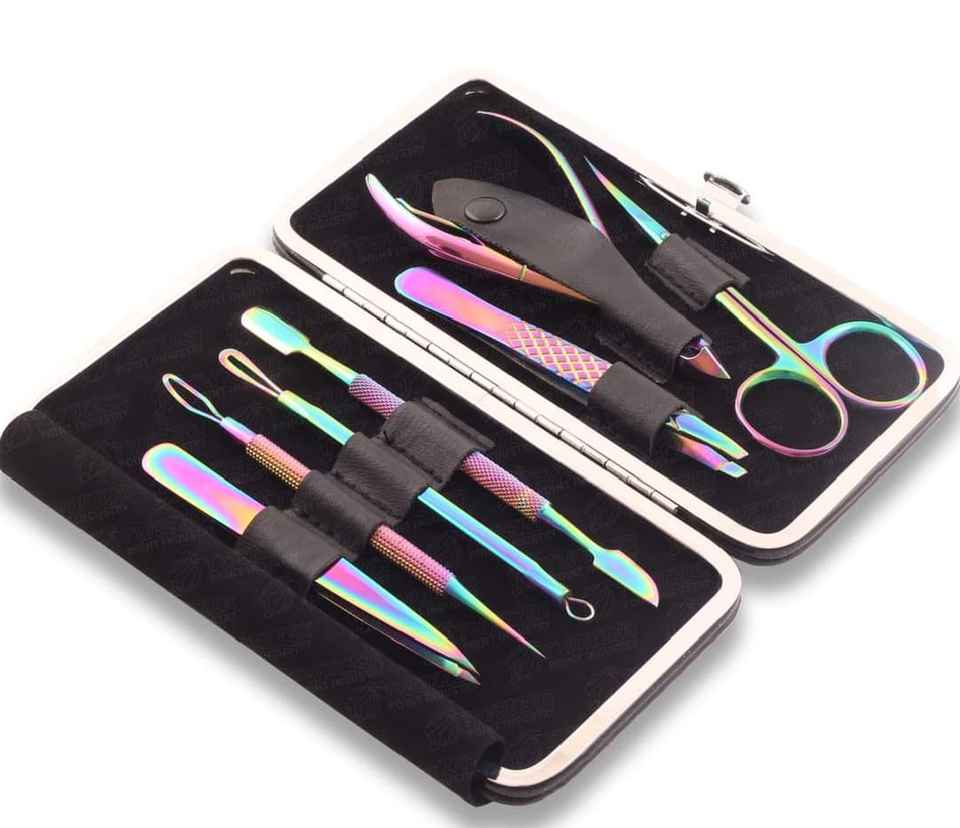 Wholesale High Quality Manicure Pedicure Tools Kit Multi Color Coated Manicure Tools Kit With Leather case