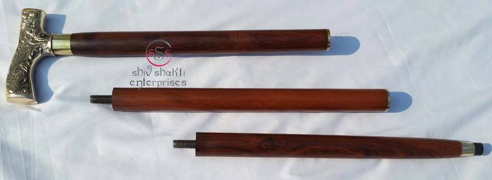 Wholesale High Quality Modern Custom Brown Wooden Walking Stick Brass Polish Flat Shape Handle Luxurious Gift Item Old Men Women