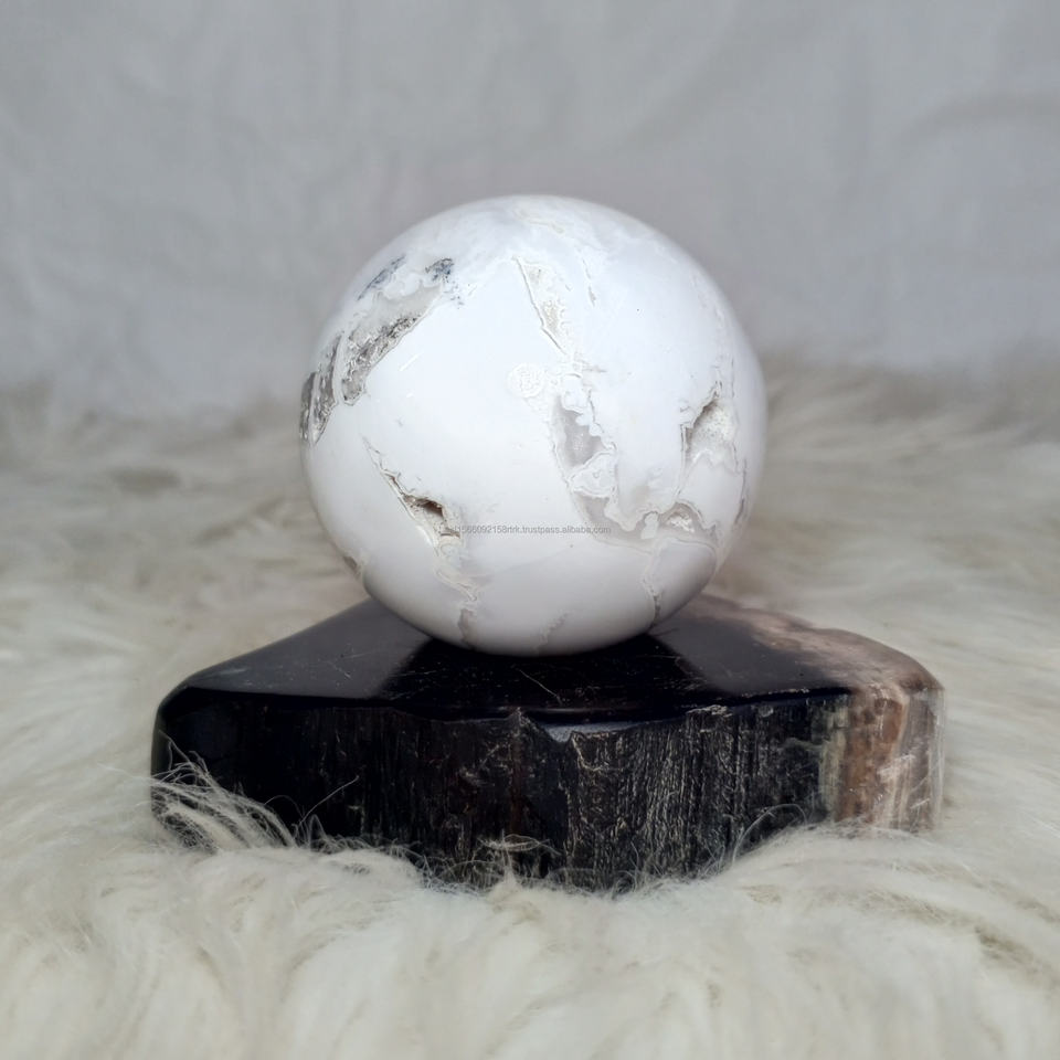 Wholesale High Quality Natural Indonesia White Snow Agate Sphere Shape Gemstones Handicraft Healing Crystal 5cm