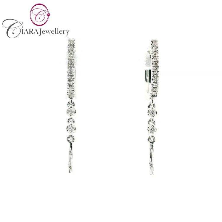Wholesale High Quality OEM ODM 18K AU750 Solid White/Yellow Gold Real Natural Diamond Dangle Pearl Wedding Party Drop Earrings