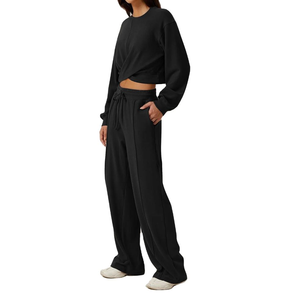 Wholesale High Quality Pink Sweatsuit Crop Top Hoodie Crewneck Oversized Wide Leg Joggers Set French Terry Sweatshirt Set Women