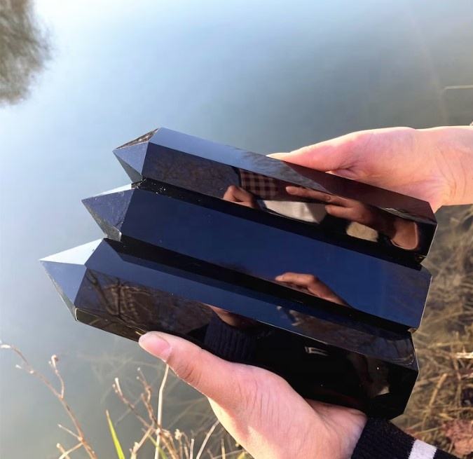 Wholesale High Quality Polished Black Obsidian Crystal Obelisk Large Tower Point Wand in Feng Shui Style