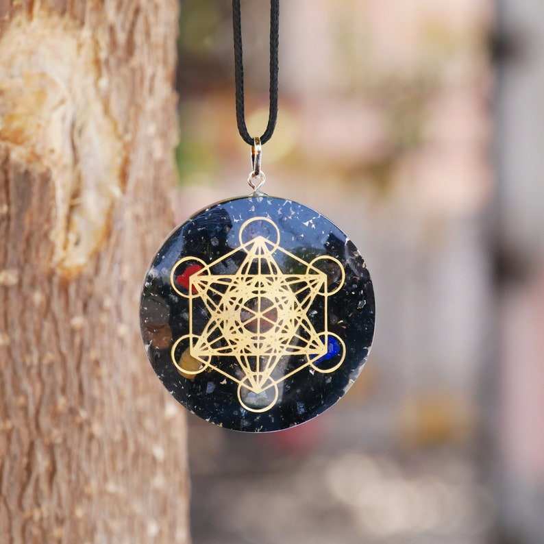 Wholesale High Quality Polished Crystal Ashtray Black Tourmaline Metatron Cube Merkabah Orgone Pendant Semi-Precious Stone Feng