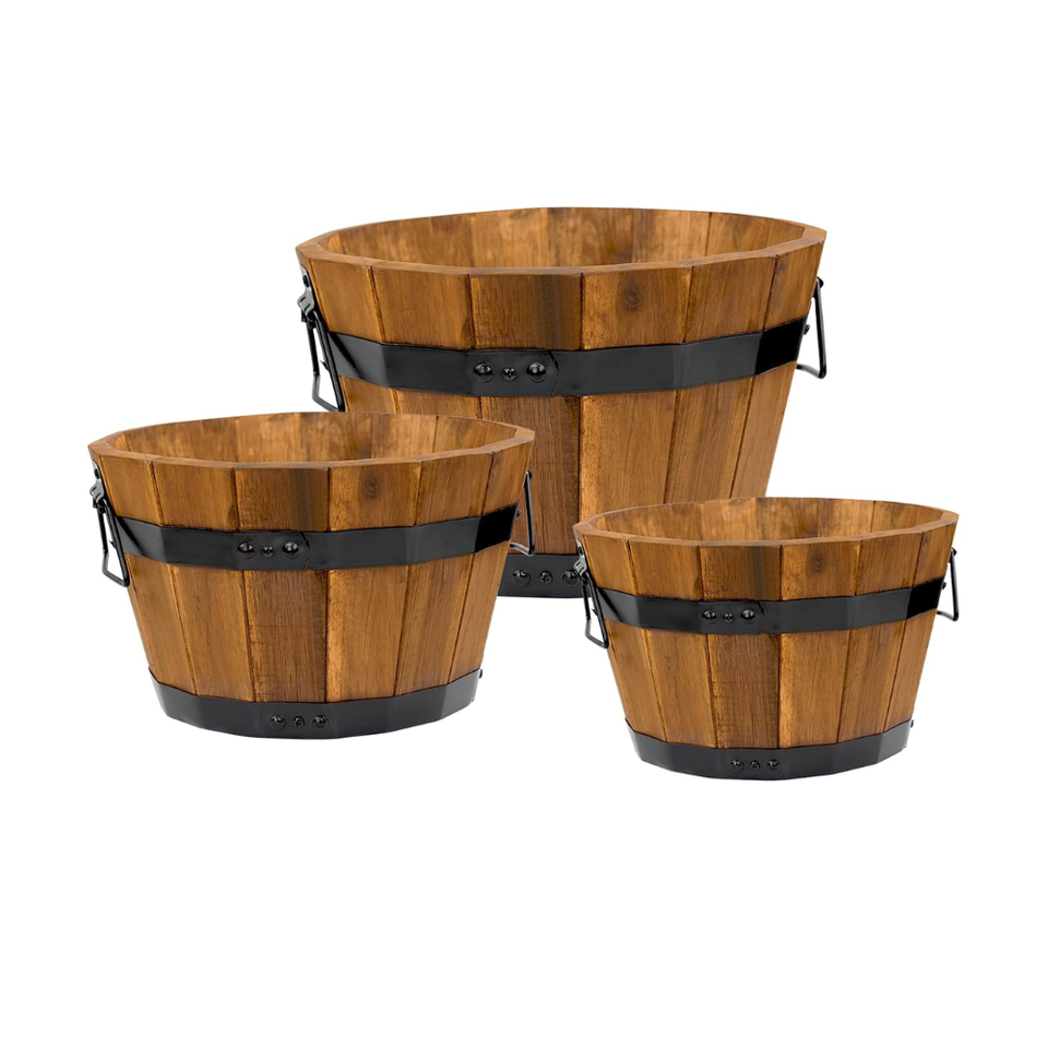 Product Name:Set of 3 Wood Barrel Planters for Outdoor Plants