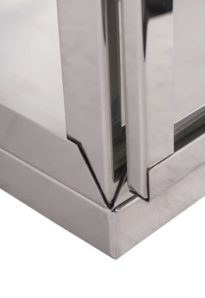 Handmade Mirror Polished Stainless Steel Candle Pillar Holder High Quality Thin Lanterns for Christmas Home Decoration Wood