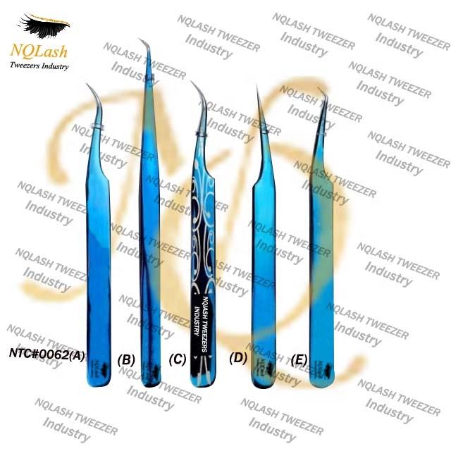 Wholesale High Quality Titanium Blue Eyelash Extension Tweezers Private Label Best Style get Eyelash Tweezers From NQLASH
