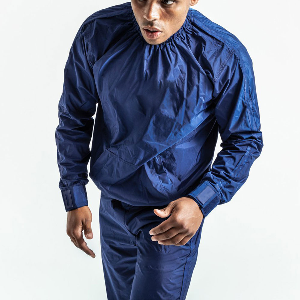 Wholesale High Quality Training Jogging Contrast Color Blue Custom 4 Way Stretch PVC Nylon Polyester Elastic Waist Sauna Suit