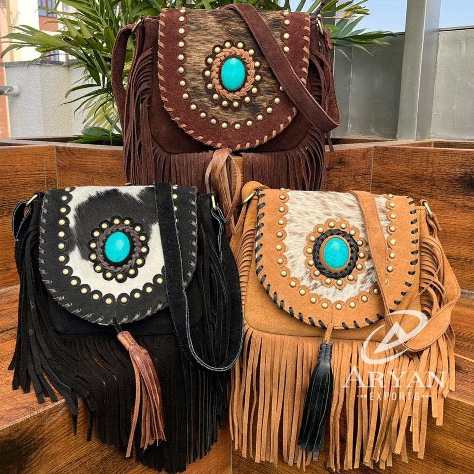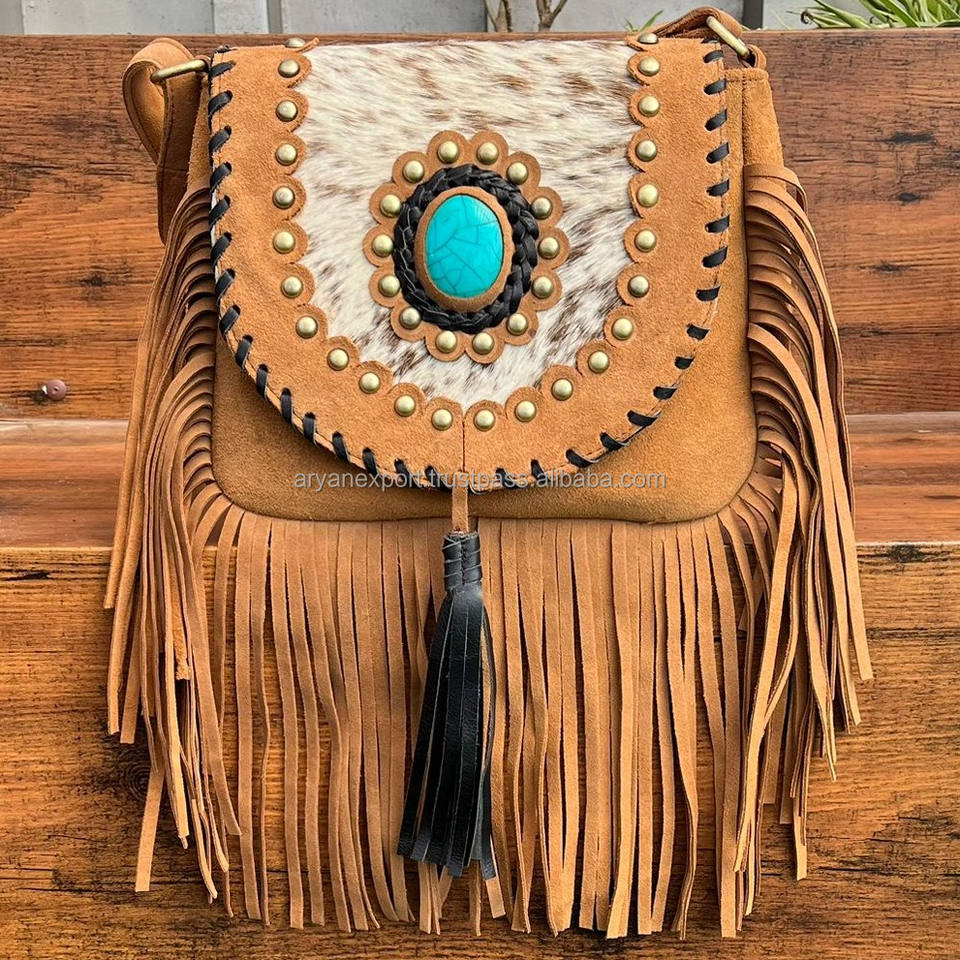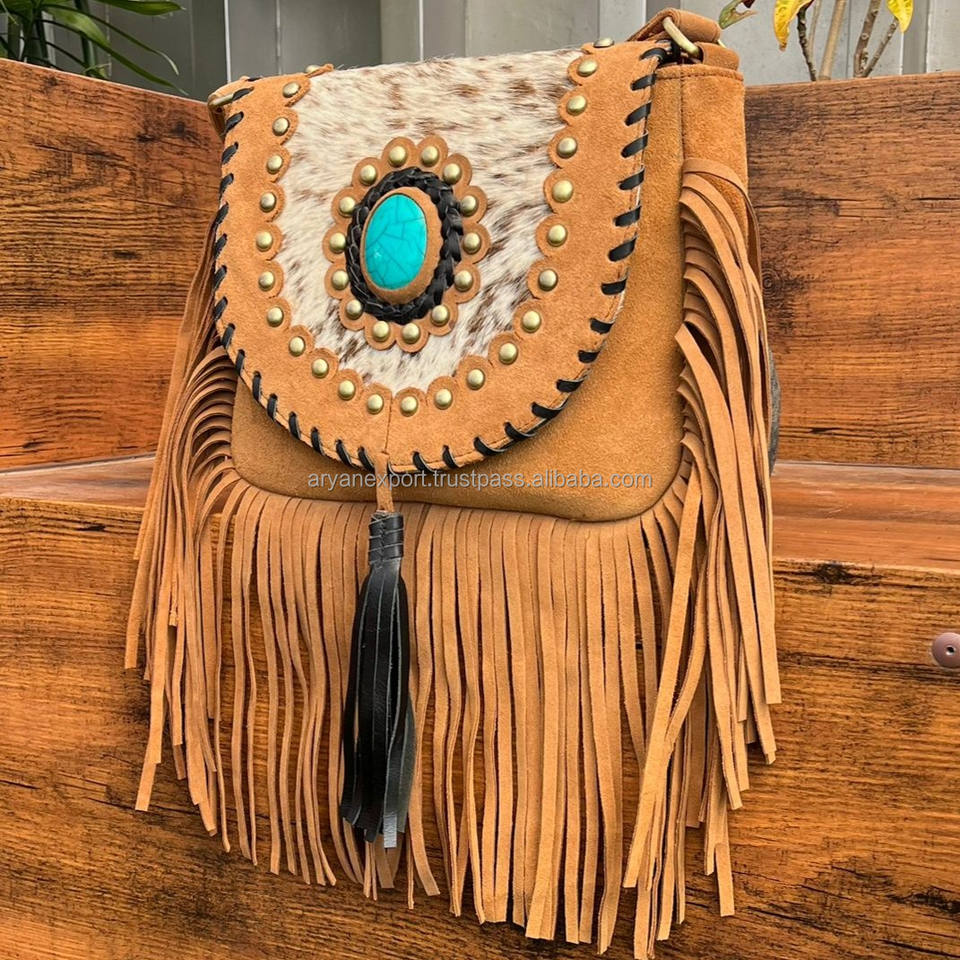 Wholesale High Quality Women Cowhide Leather Large Capacity Crossbody Bag Genuine Suede Leather Fashionable Fringe Shoulder Bag