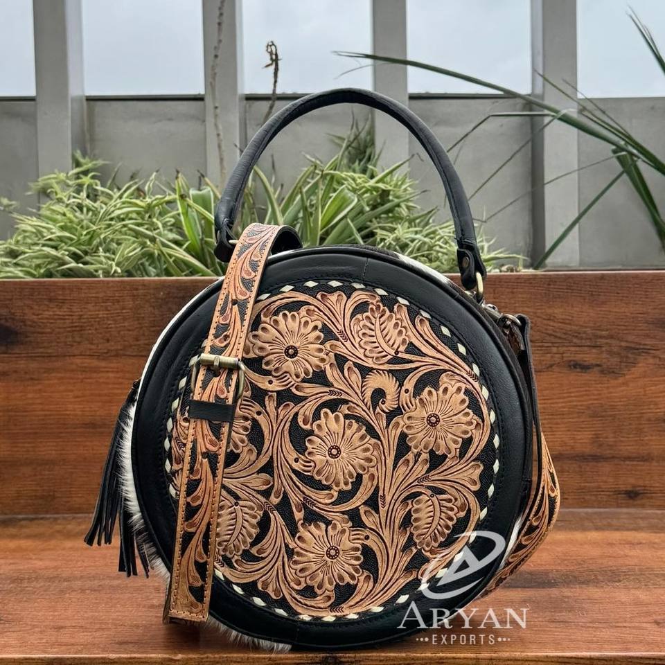 Product name:Hand Tooled Leather Round Bag