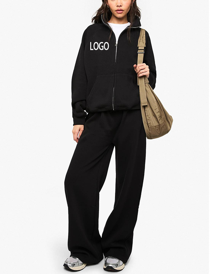 Wholesale High Sale Fitness Apparel Women Plus Size Jogging Tracksuit Breathable Durable Athletic Cotton Zipper Active 2PCS Set