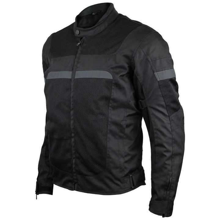 Wholesale High Street Men Black Windproof Zipper Motorbike Racer Jacket With Mandarin Collar & Thermal Inner Lining
