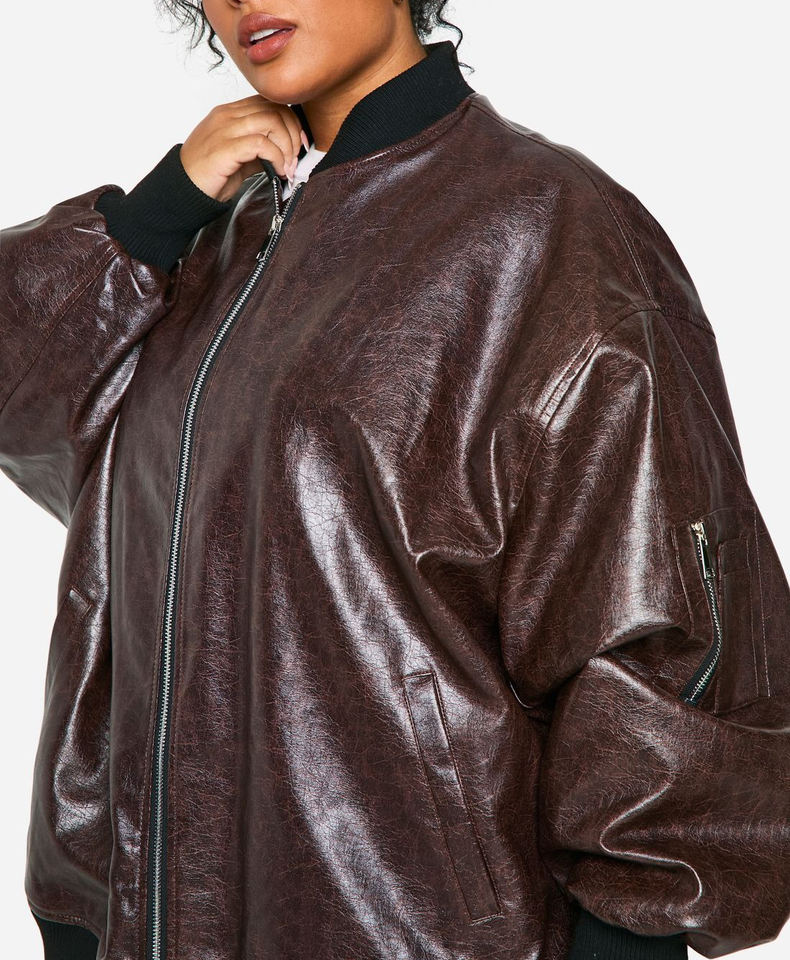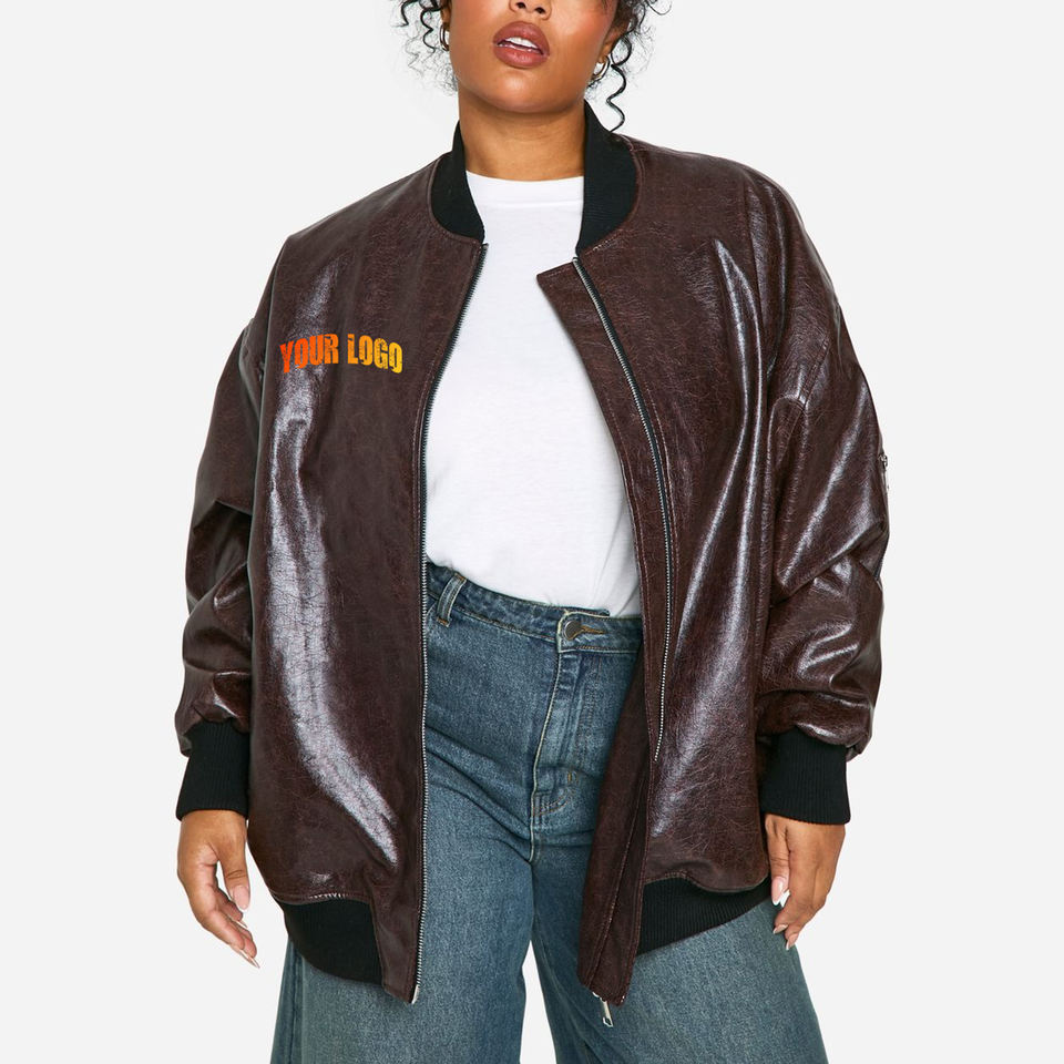 Wholesale High Street stylish cracked leather Varsity Jacket for women's Customizable Winter casual wear baggy ladies jacket