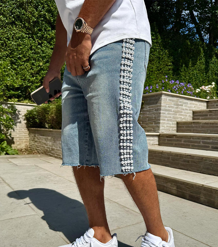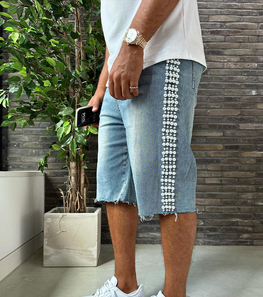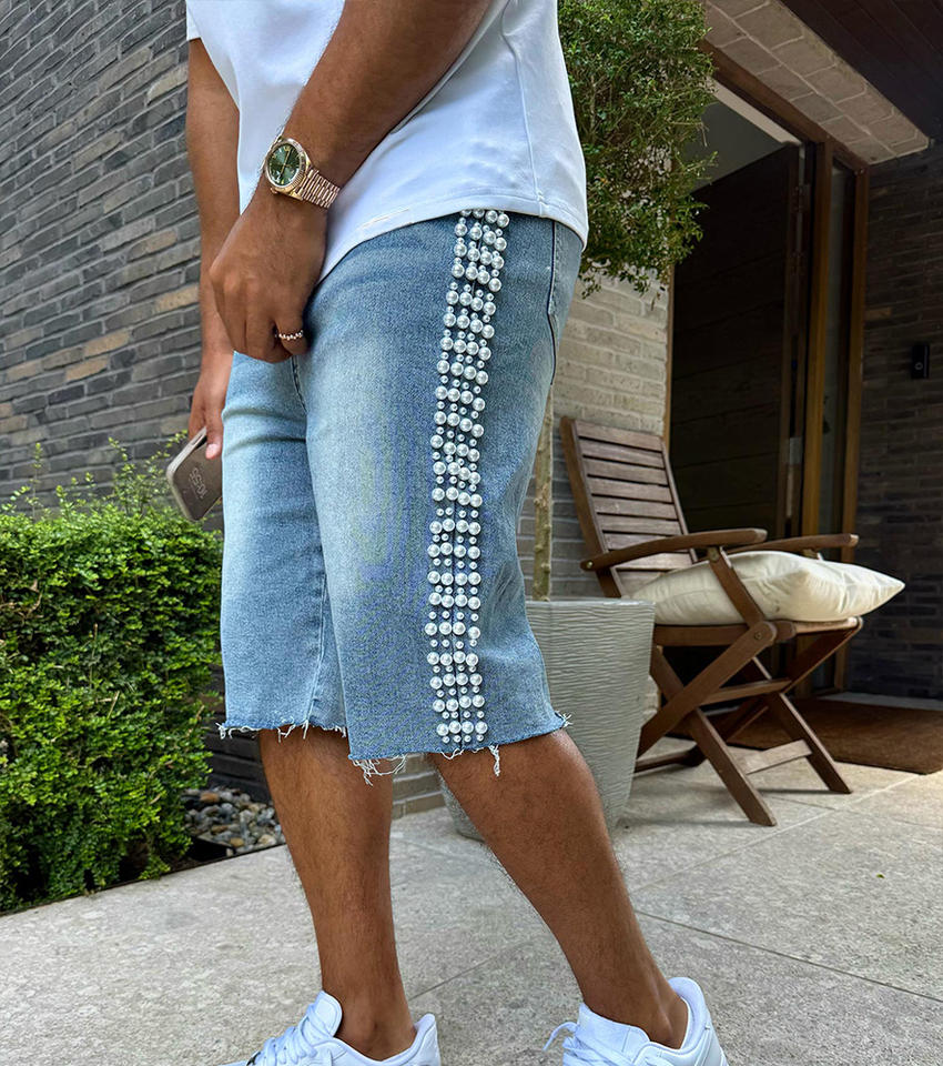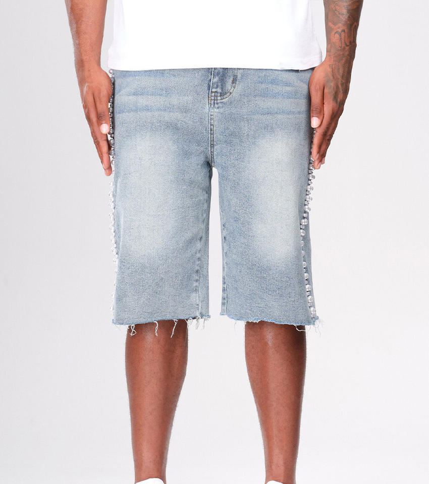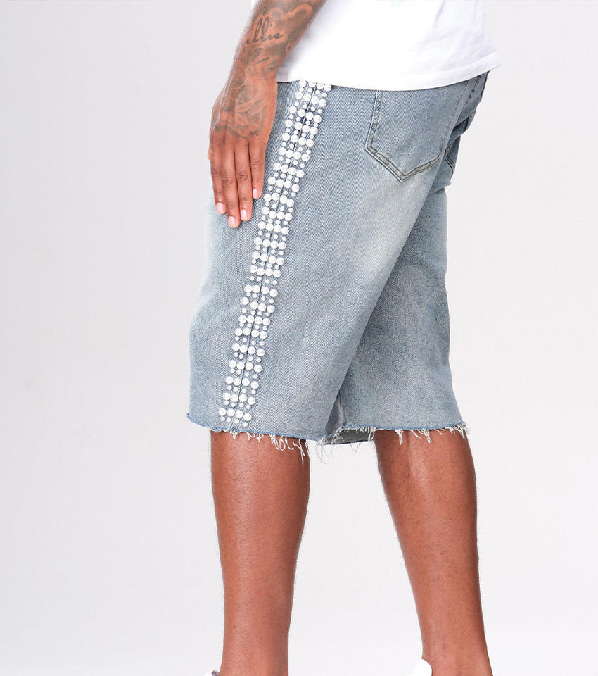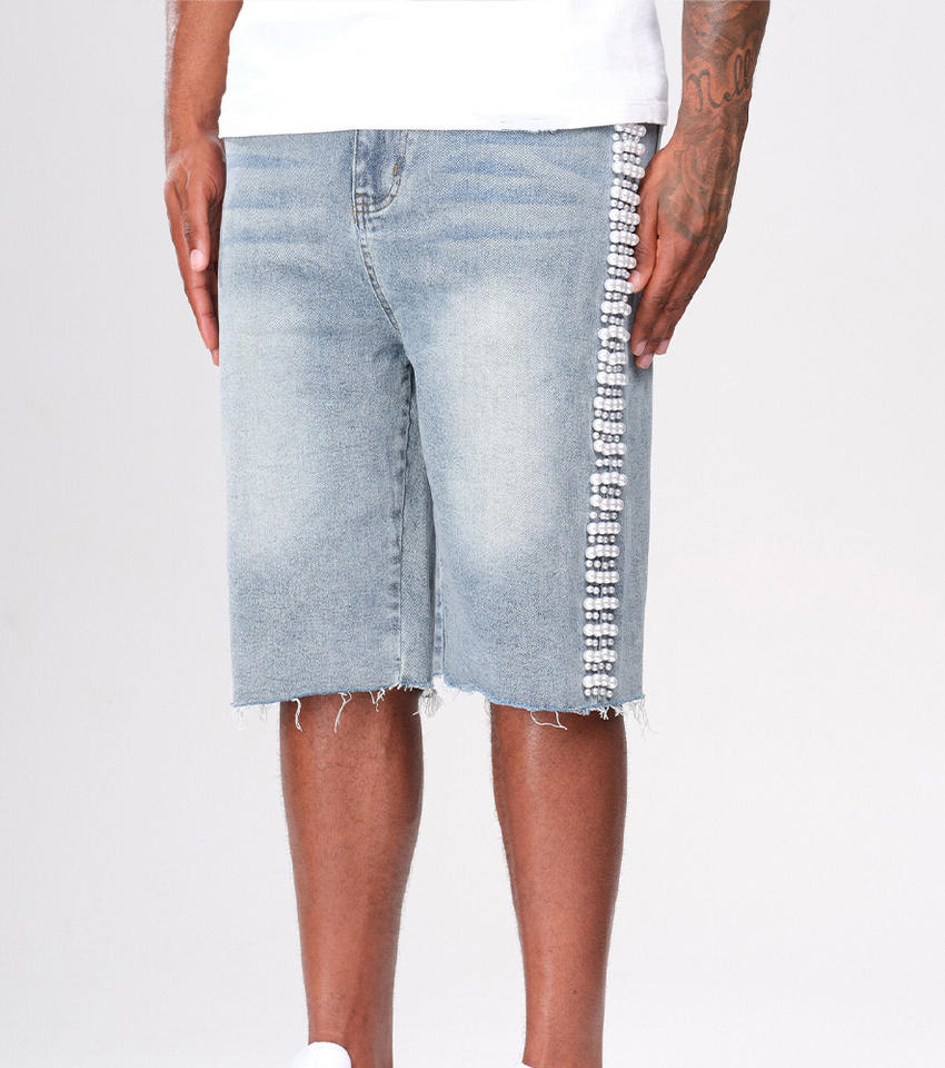 Product Name:Custom Vintage Pearl Denim Shorts