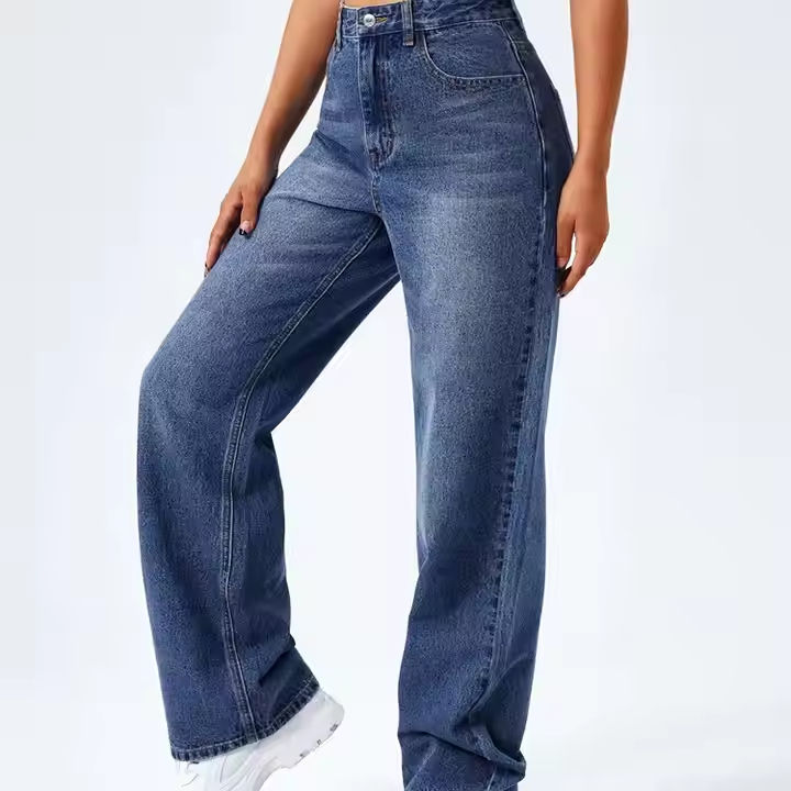 Wholesale High Waist Women Jeans Breathable Loose Leg Denim Pants with Button Decoration Summer Casual Style