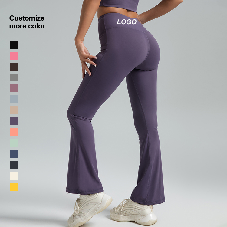 Wholesale High-Waisted Elastic Waist Solid Scrunched Butt Yoga Leggings Plus Size Custom Logo Flare Eco-Friendly Breathable