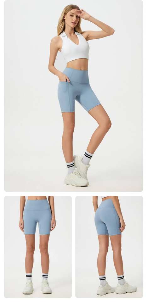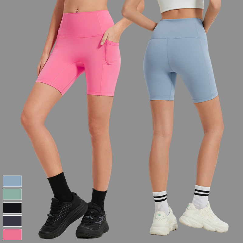 Wholesale High Waisted Hip Lift Belly Lulu Yoga Pants Women's Side Pocket Nude Shape No T Line Sport Shorts