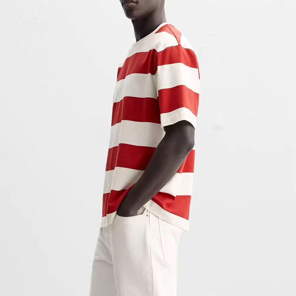 Wholesale High-quality Cotton Round Neck T Shirt Custom logo Short Sleeved Men's Striped T-Shirt