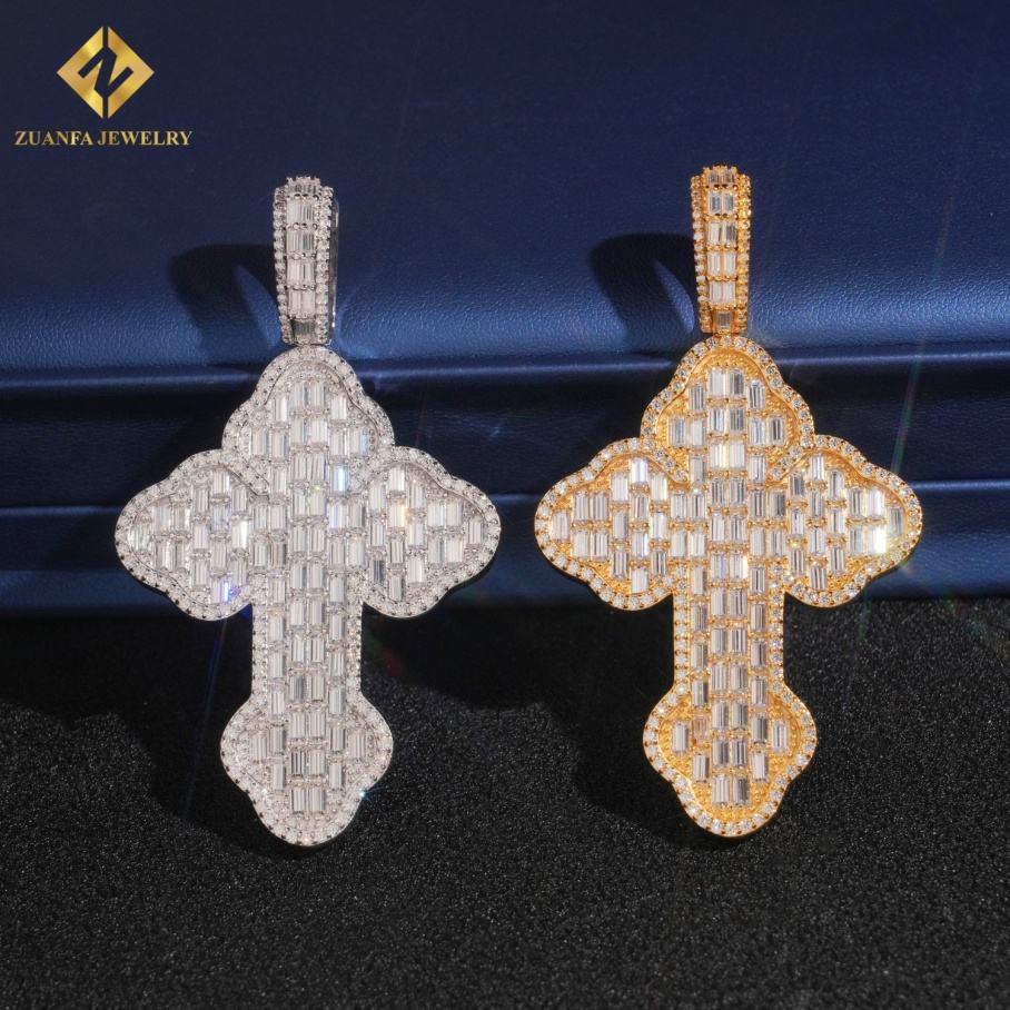 Wholesale Hip-Hop Jewelry 925 Sterling Silver Moissanite Baguette Cross Jesus Pendants Men's Iced Out Cross Charms With Chain
