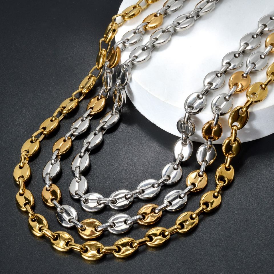 Wholesale Hiphop Jewelry Stainless Steel 18k Gold Sliver Pig Nose Coffee Bean Chain Necklace Women Men
