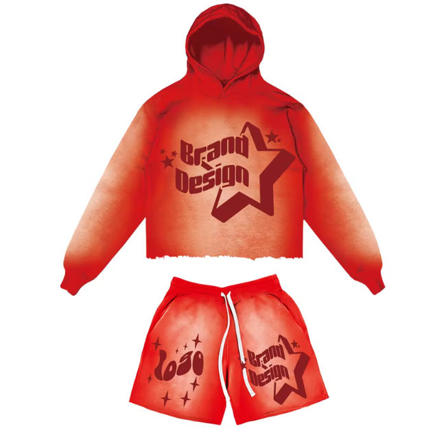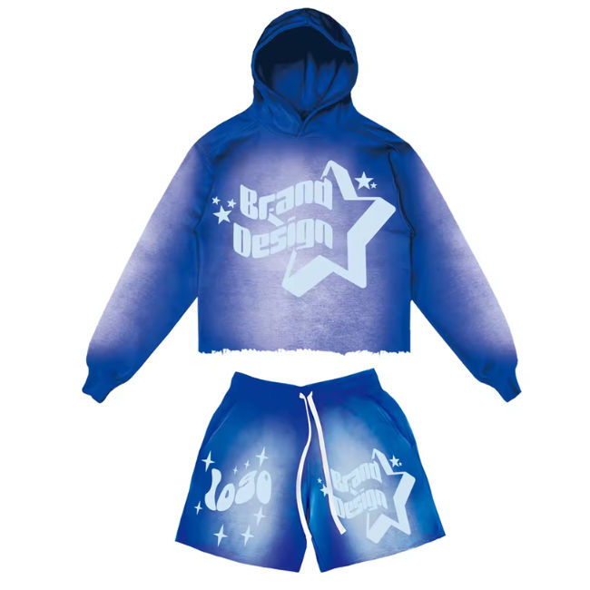 Wholesale Hoodie and Shorts Set New 2025 Cropped Hoodies and Shorts Set Acid Washed Sweat Suit for Ladies With Distress Bottom